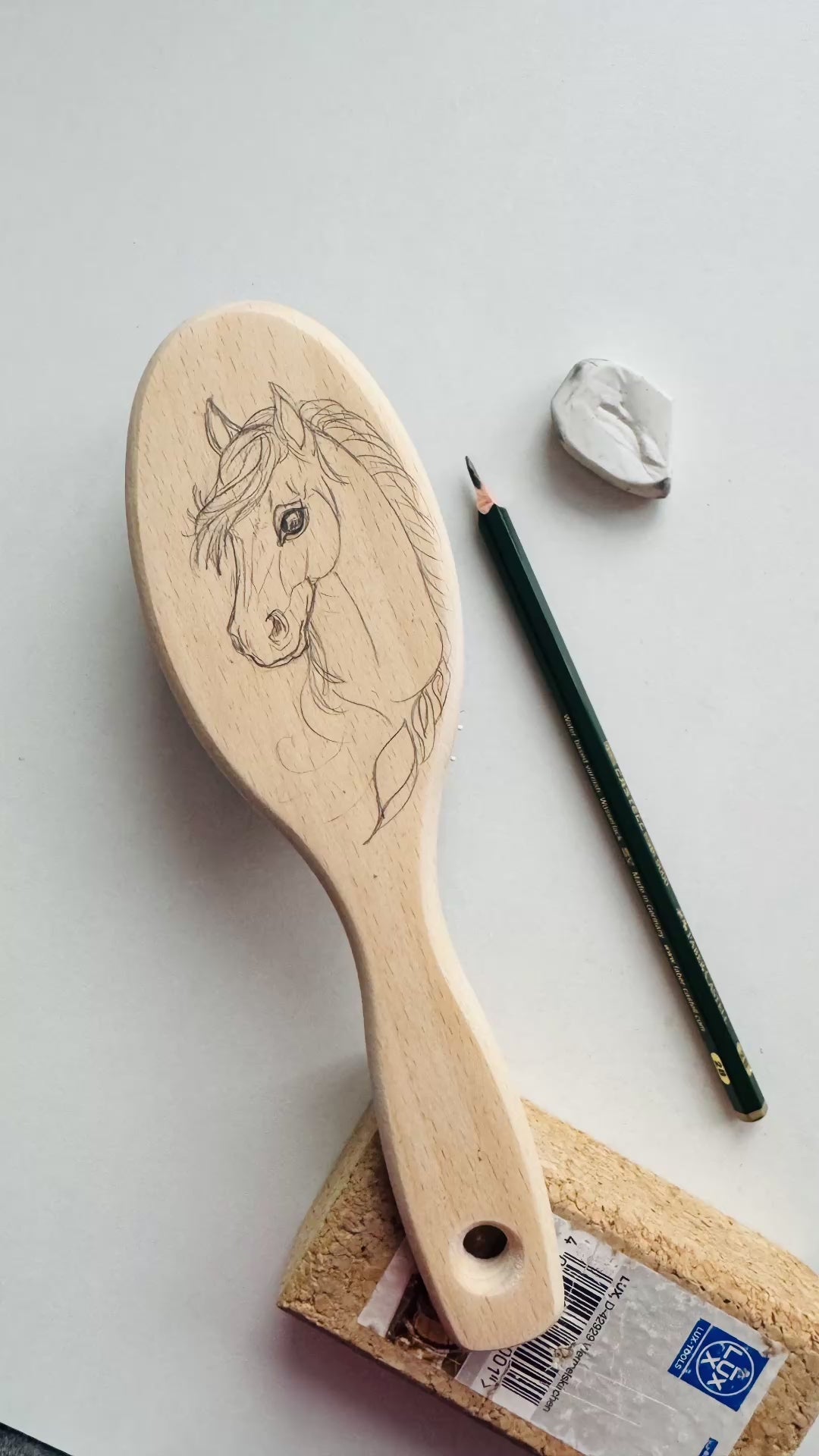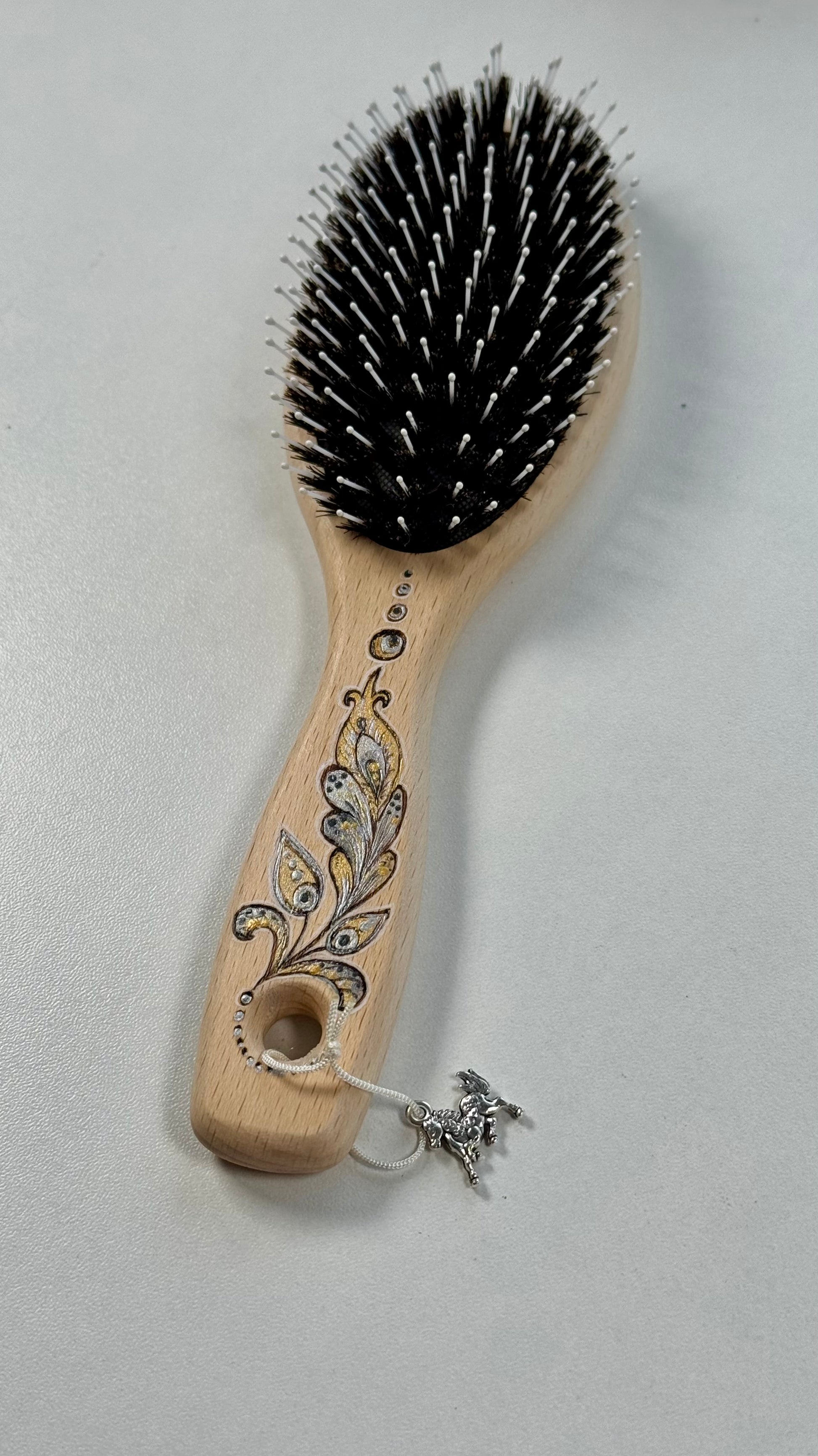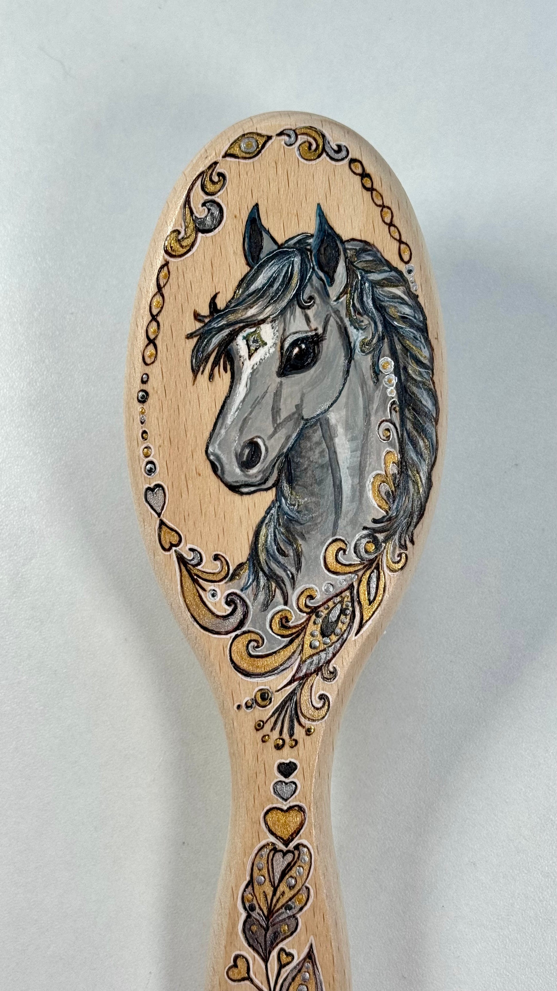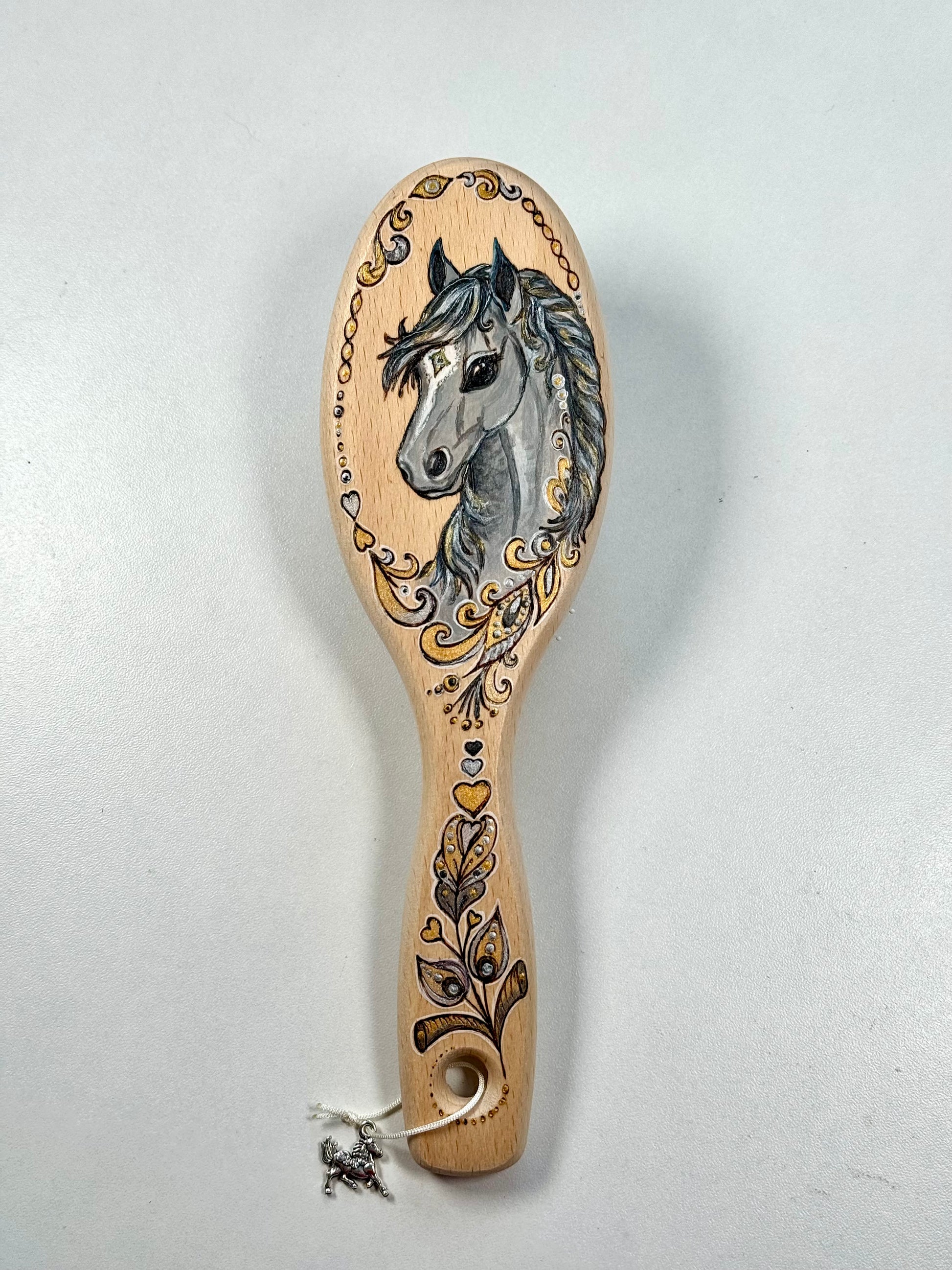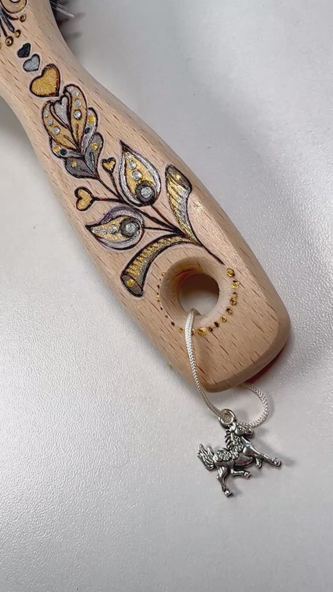 Diese handbemalte Holzbürste ist ein echtes Unikat – mit viel Liebe zum Detail gestaltet. 🐴🌿