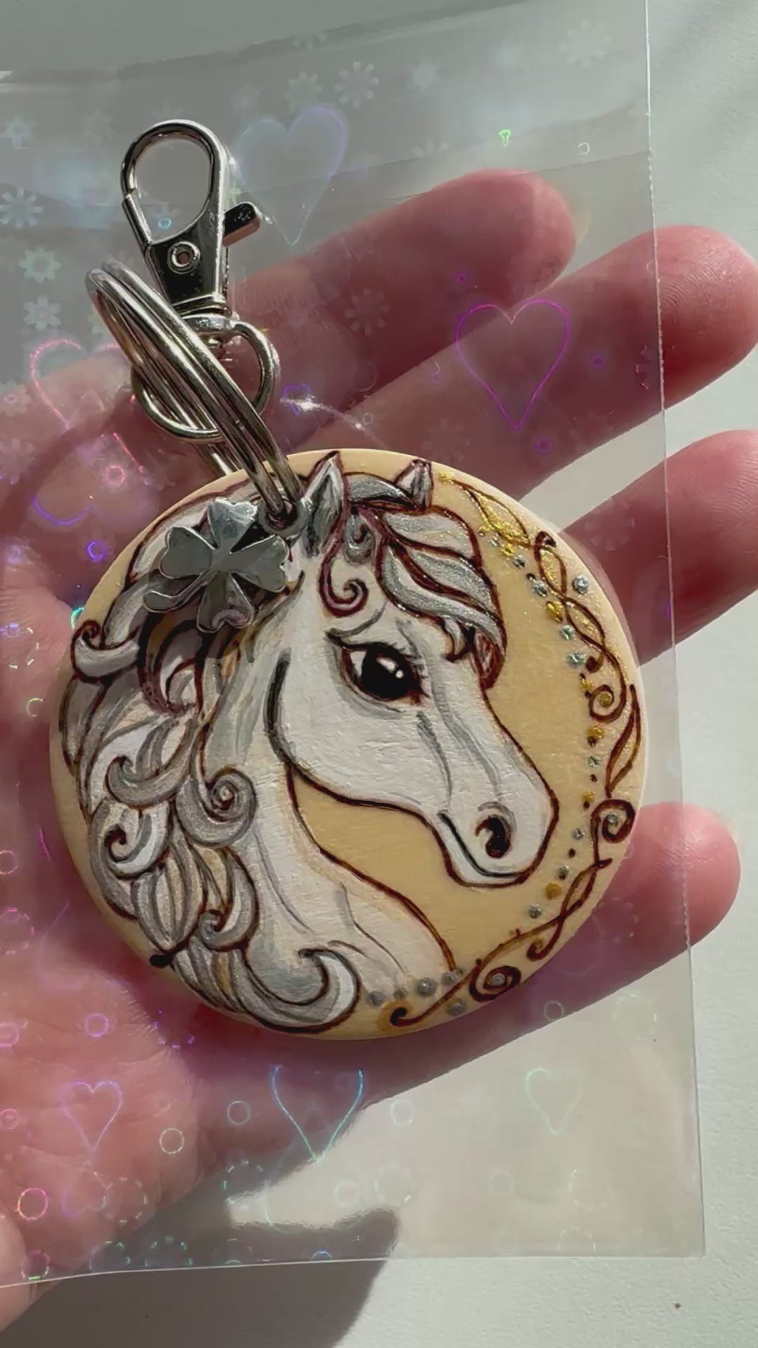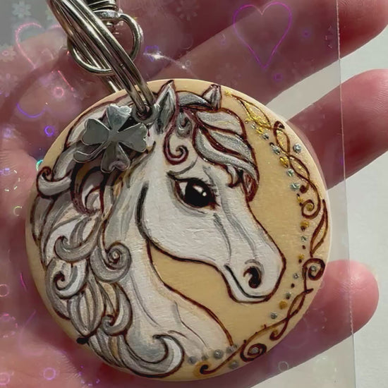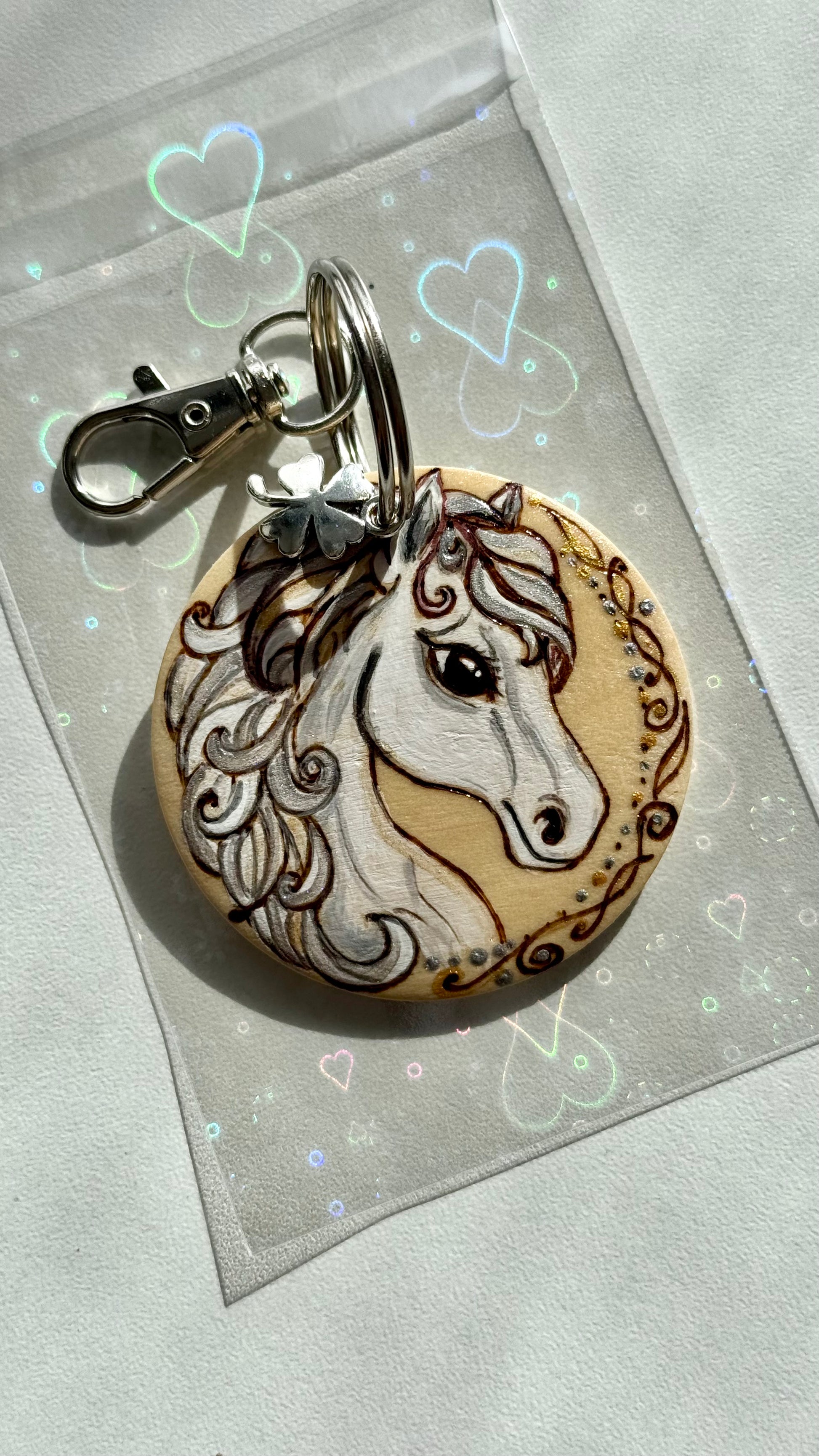 Ein einzigartiger handbemalter Schlüsselanhänger aus Holz mit einem eleganten Pferdemotiv. Perfekt als Geschenk für Pferdeliebhaber 🐴💖