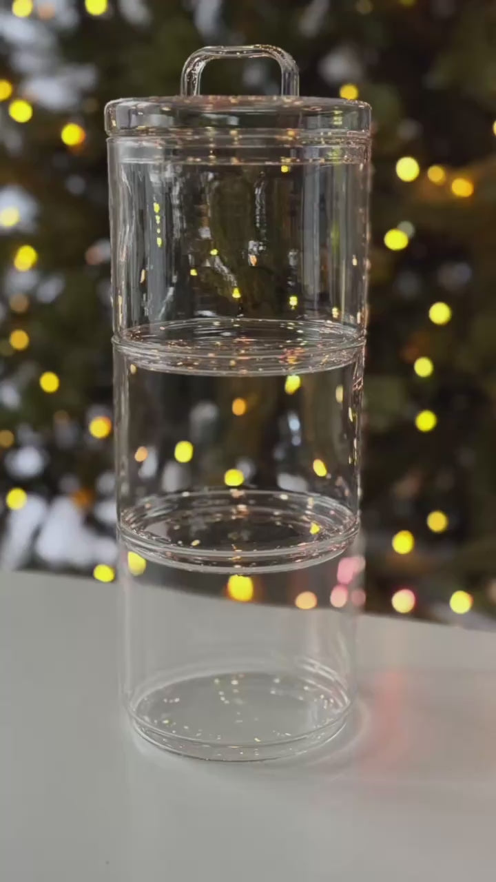 Elegantes Vorratsglas 3- stöckig aus Klarglas mit handgraviertem Blumenmotiv in Herzform. Die Linien und floralen Details werden in sorgfältiger Handarbeit graviert, wodurch jedes Glas ein Unikat ist. Ideal zur Aufbewahrung von Tee, Süßigkeiten oder kleinen Vorräten.