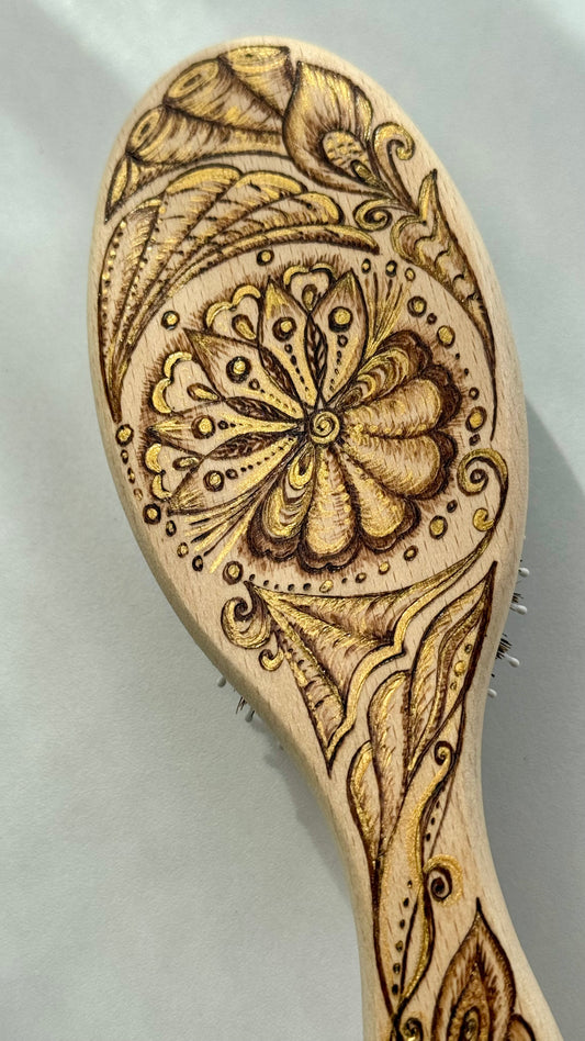 Handbemalte Holzbürste mit Pferdemotiv